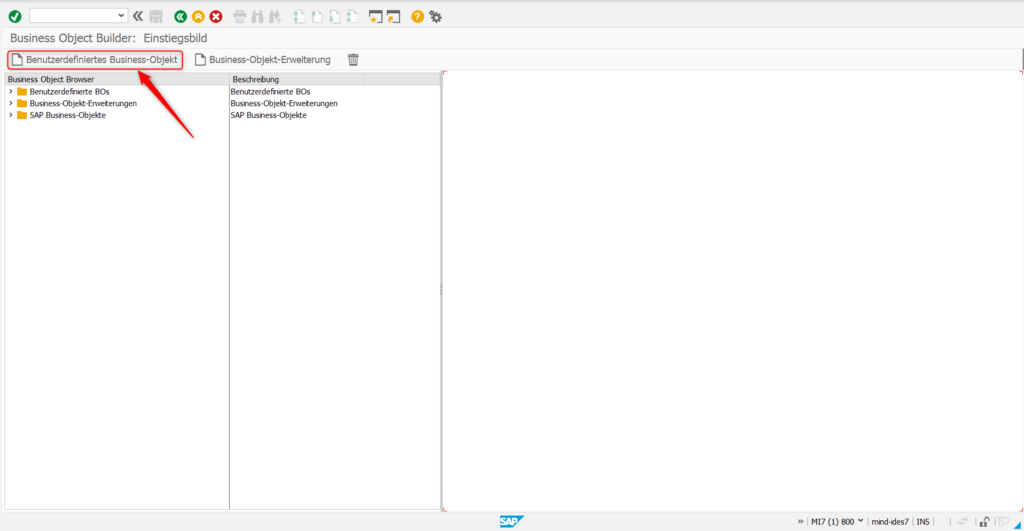 Um nun das Geschäftsobjekt “Abteilung” anzulegen, starten Sie SAP und gelange über die Transaktion BOB in den Business Object Builder.